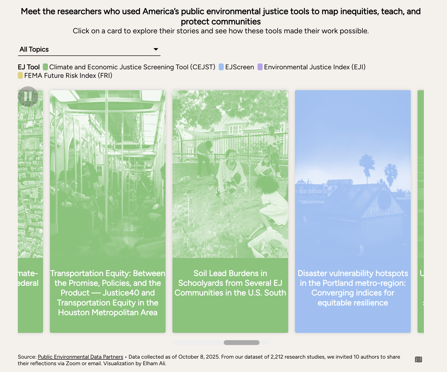 I work primarily in R and its visualization libraries, along with Highcharter, Flourish, QGIS, HTML/CSS, and JavaScript libraries like Scrollama. Lately, I’ve been exploring the creative possibilities of D3.js.
